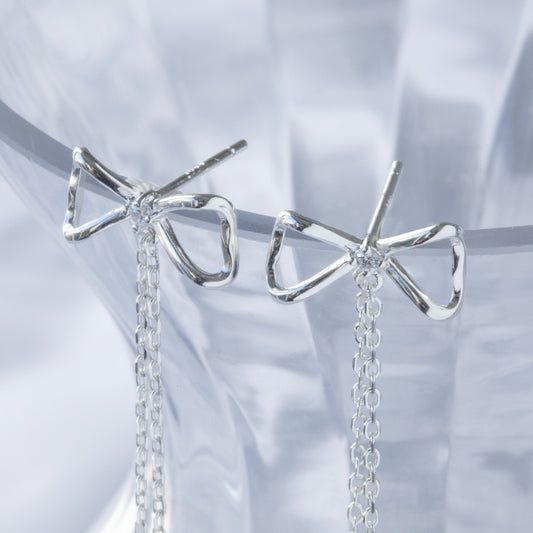 Sold out925 Silver Mini Ribbon Drop Earrings
