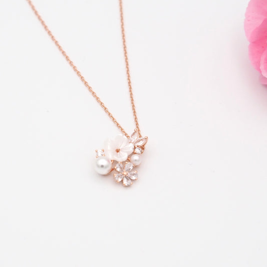 Blossom Butterfly Necklace - Rose gold